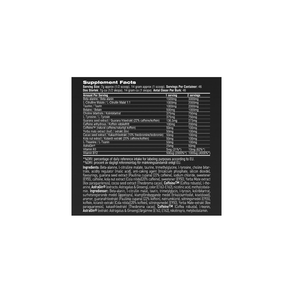 Seit langem arbeitet die Entwicklungsabteilung von Swedish Supplements an einer neuen, einzigartigen Formel für Energie, Konzentration und Leistungssteigerung. Das Ergebnis ist das maximal dosierte Crazy8, das satte 400 mg Koffein pro voller Portion enthält, wovon 100 mg Coffein® ein organisches Koffein ist, das natürlich aus Kaffeebohnen gewonnen wird. Dies wirkt synergetisch und sorgt dafür, dass Sie von der ersten Dosis an wach und motiviert sind. Die Simulanzienformel von Crazy8 besteht im Wesentlichen aus verschiedenen Koffeinquellen, die aus dem Pflanzenreich gewonnen werden. Daher haben sie einen unterschiedlichen Charakter, aber eine ähnliche Wirkung und geben insgesamt eine stark belebende Wirkung. Crazy8 enthält auch Astragin®, eine patentierte, 100% pflanzliche Verbindung, die die Aufnahme vieler wichtiger Nährstoffe erhöht. Für die Konzentration gibt es eine kräftige Dosis Cholinbitartrat, Tyrosin und Theanin.