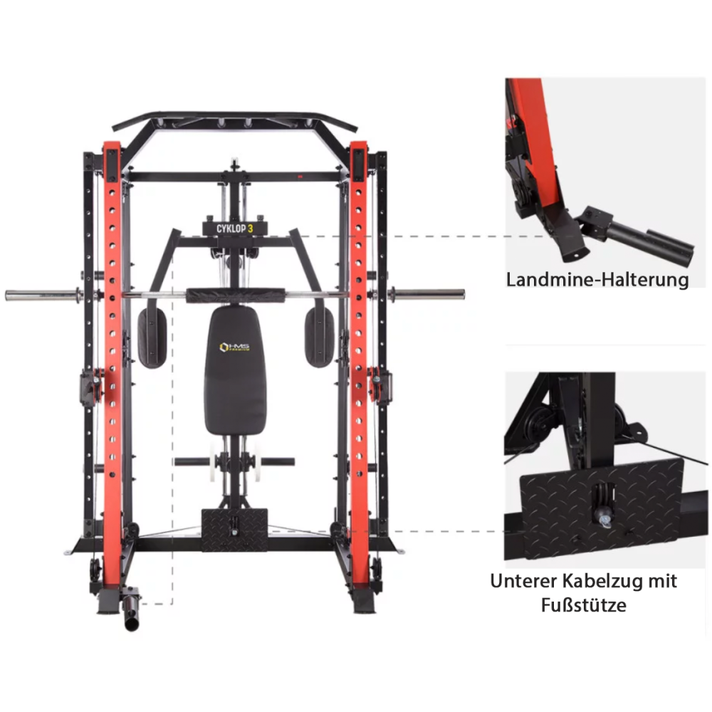 CYKLOP 3 HMS ist eine Kraftstation der Klasse Semi Commercial. Sie ist ideal für kleine Fitnessclubs sowie für den Heimgebrauch.